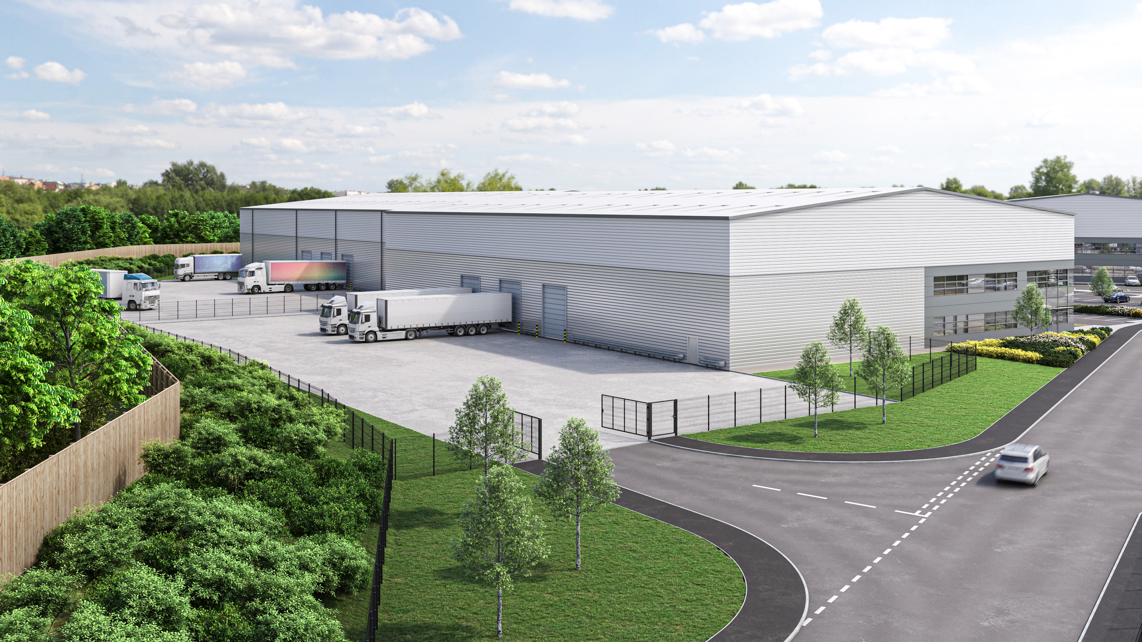 Network Space has completed a 172,000 sq ft speculative industrial scheme comprising 3 detached, self-contained units ranging from 29,500 - 61,000 sq ft, along with a terrace of a further 3 units ranging from 11,000 – 19,000 sq ft. Each offers high quality warehouse space, extensive secure yards and dedicated car parking, along with office accommodation and amenities. The larger units provide 10 metre eaves height with the biggest unit offering 5 dock level access doors, as well as trailer parking spaces.